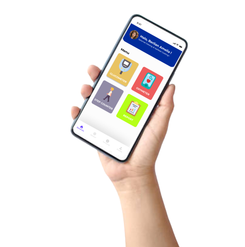 Pengukuran dilakukan oleh Sensor Gula Darah, Sensor Saturasi Oksigen dan Detak Jantung juga Step Counter